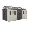 This Lifetime dual-entry outdoor storage shed has two sets of double doors that offer easy access to stored items. Two interior deadbolts keep the left door securely closed, and exterior padlock loops let you lock the doors to protect your belongings.